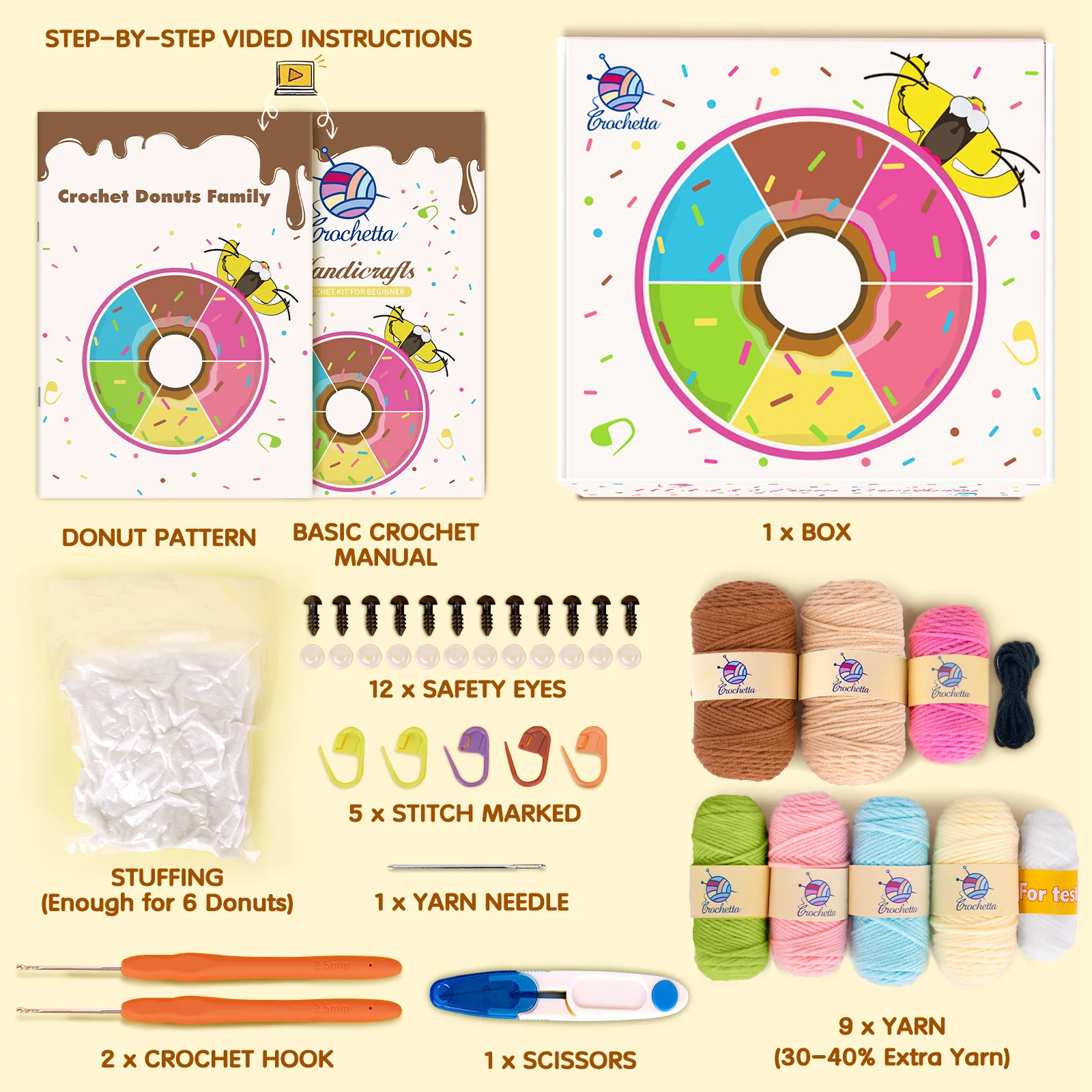 We've gone the extra mile by providing an additional 40% yarn in every color, so beginners can experiment and correct any mistakes they may make without worrying about running out of yarn.